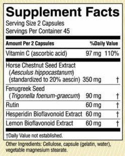 Vitamin C, horse chestnut seed extract, fenugreek seed, rutin, hesperidin, lemon bioflavonoid extract