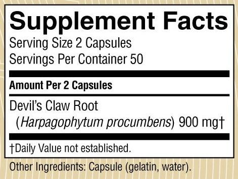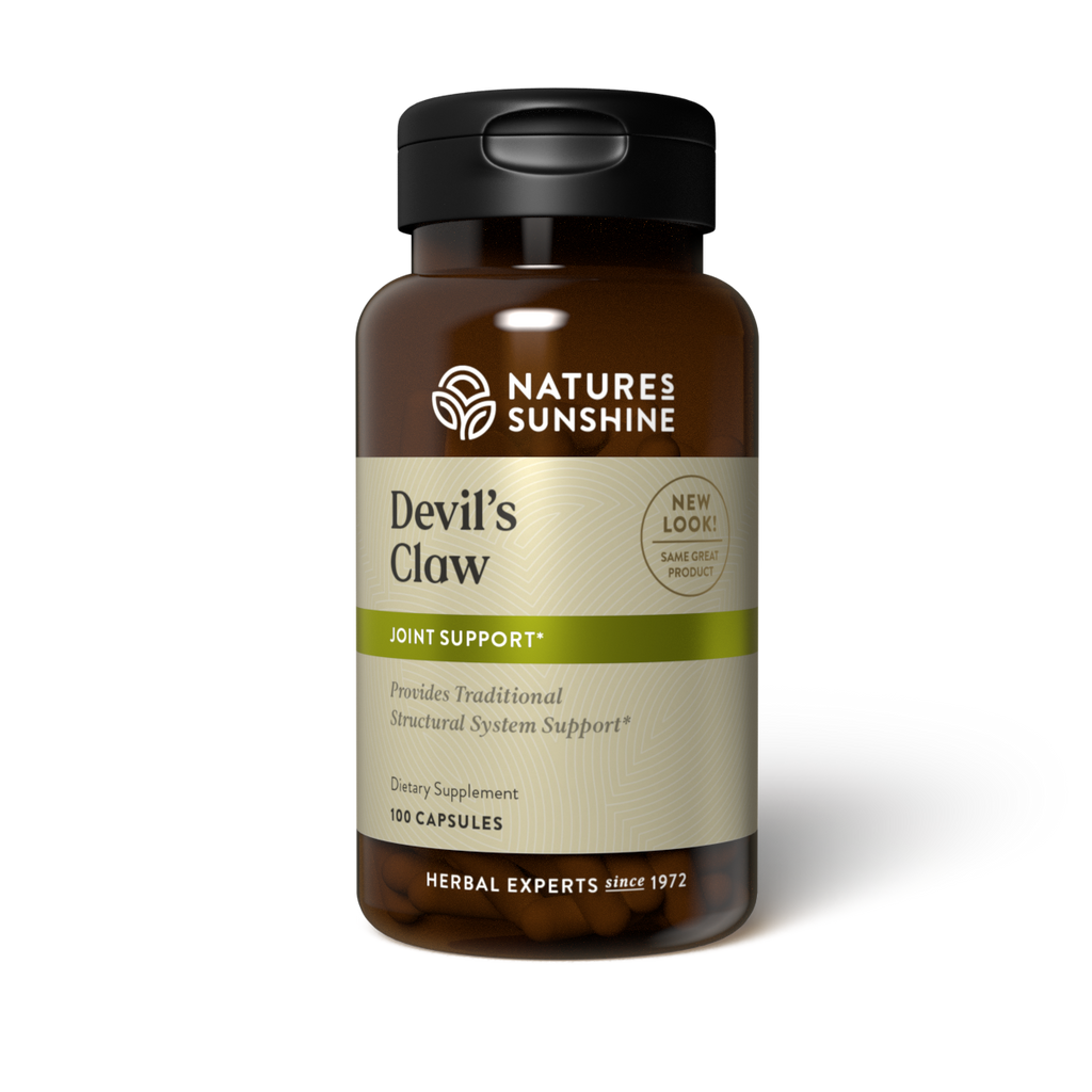 Herbalists consider devil’s claw a nutritional aid for the structural and immune systems. Devil's claw was introduced to Europe in the early 1900s, where the dried roots have been used to restore appetite, relieve heartburn, and reduce pain and inflammation. Today, devil's claw is used widely in Germany and France to fight inflammation or relieve arthritis pain, headache, and low back pain.Ingredients