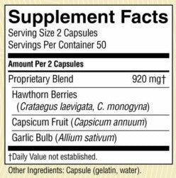 Hawthorn berries contain constituents that appear to enhance heart muscle function and circulatory health. Garlic may help to improve circulation. Capsicum may promote circulation in the extremities.- Supports healthy circulation.