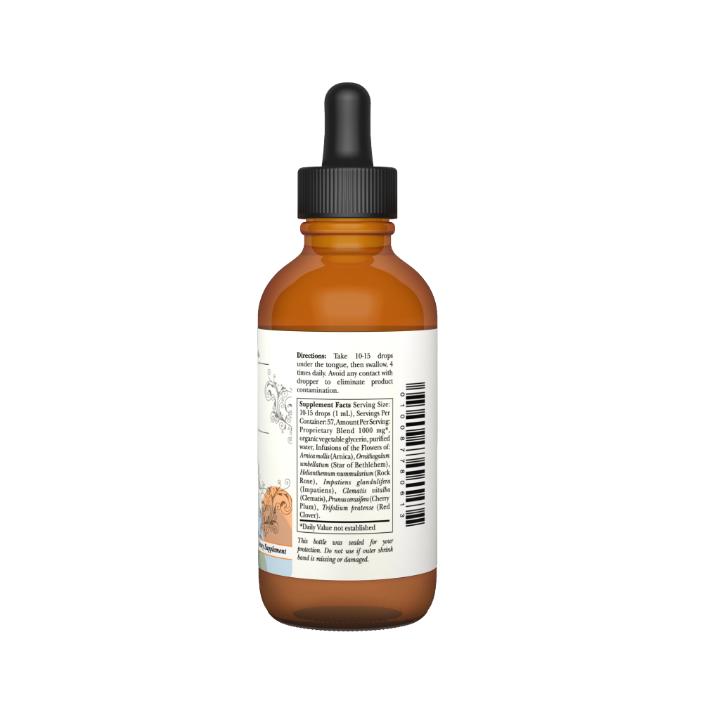 Arnica (Arnica mollis), Star of Bethlehem (Ornithogalum umbellatum), Rock Rose (Helianthemum nummularium), Impatiens (Impatiens glandulifera), Clematis (Clematis vitalba), Cherry Plum (Prunus cerasifera) Red Clover (Trifolium pratense), vegetable glycerin and purified water.How to Use