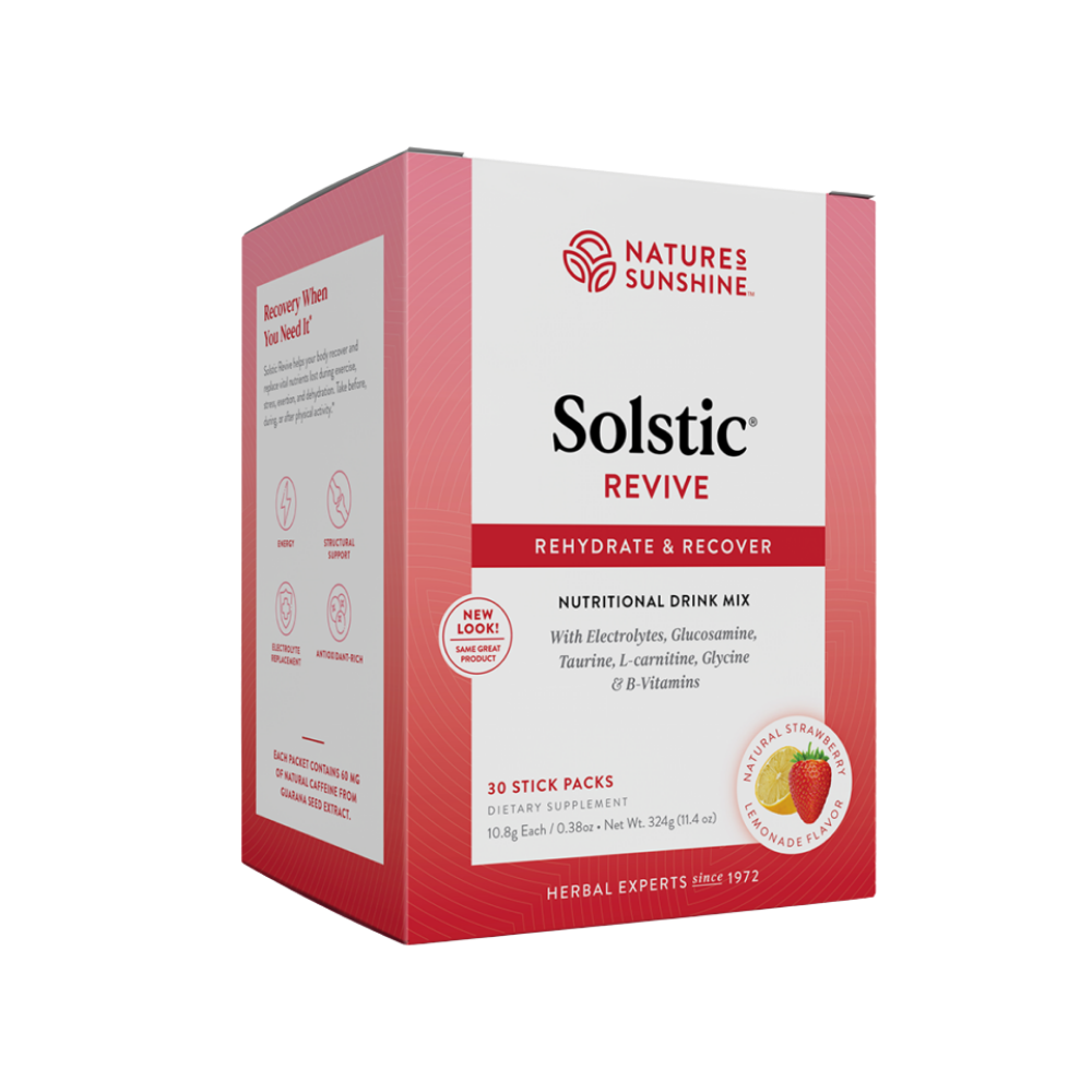 Solstic Revive replaces vital nutrients—including calcium, magnesium, sodium and potassium—lost during exercise, stress, exertion, dehydration and malnutrition. Revive is perfect for before, during and after any strenuous activity or as a refreshing beverage anytime throughout the day. Solstic Revive contains 500 mg glucosamine per serving to help support joint and cartilage health; electrolytes, essential for hydration, nerve and muscle function and proper pH levels; the amino acids l-carnitine, l-taurine and l-glycine to facilitate muscle repair, increase endurance, aid general rebuilding and offer muscle and structural support; and B vitamins, which help produce energy, metabolize fats and proteins, and benefit the nervous system.Ingredients
