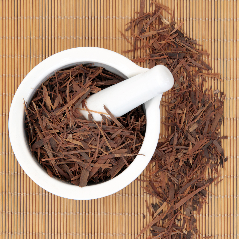 This botanical has been used by many cultures to support the immune system in specific and valuable ways. Its active components, including lapachol, may provide important properties that benefit immune health. Research indicates that pau d’arco extract seems to smother microbes, not allowing them to get the oxygen and energy they need to thrive. Harvesting pau d’arco is no easy task, but it’s worth the trouble. Pau d’arco wood is extremely popular as a building material, and because of this, the trees have been overharvested. They are an endangered and protected species in Brazil.