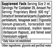 Extract of boneset aerial parts, fenugreek seed, horseradish root, mullein leaves and fennel seed in vegetable glycerin