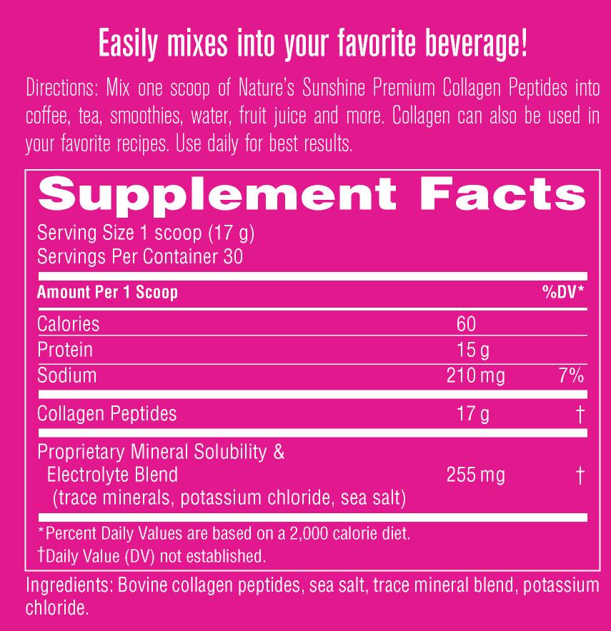 Nature’s Sunshine’s premium collagen peptides contain essential building blocks for beauty. They are easily incorporated into your daily routine and offer valuable structural benefits for youthful hair, skin and nails. Collagen also supports bones and joints for your active lifestyle. They help you look and feel fantastic!