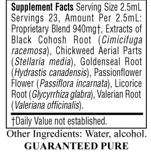 Extract of black cohosh root, chickweed aerial parts, goldenseal root, passionflower aerial parts, Chinese licorice root and valerian root in water and alcohol.How to Use