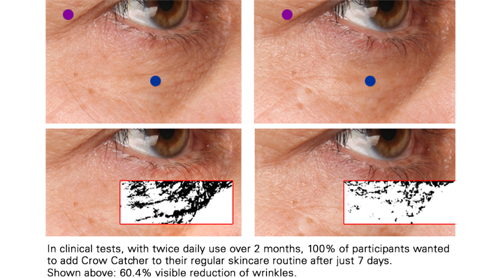 Crow Catcher's clinical tests showed even higher reduction in visible wrinkles – up to 60.4%. Now that’s something to crow about!