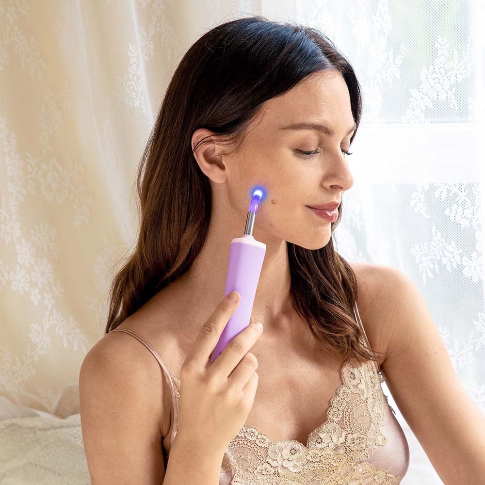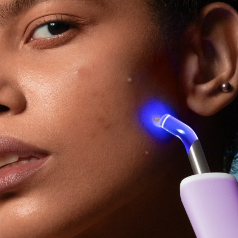 Ultra-concentrated blue LED penetrates below the skin to kill acne-causing bacteria at the source, preventing future breakouts.
