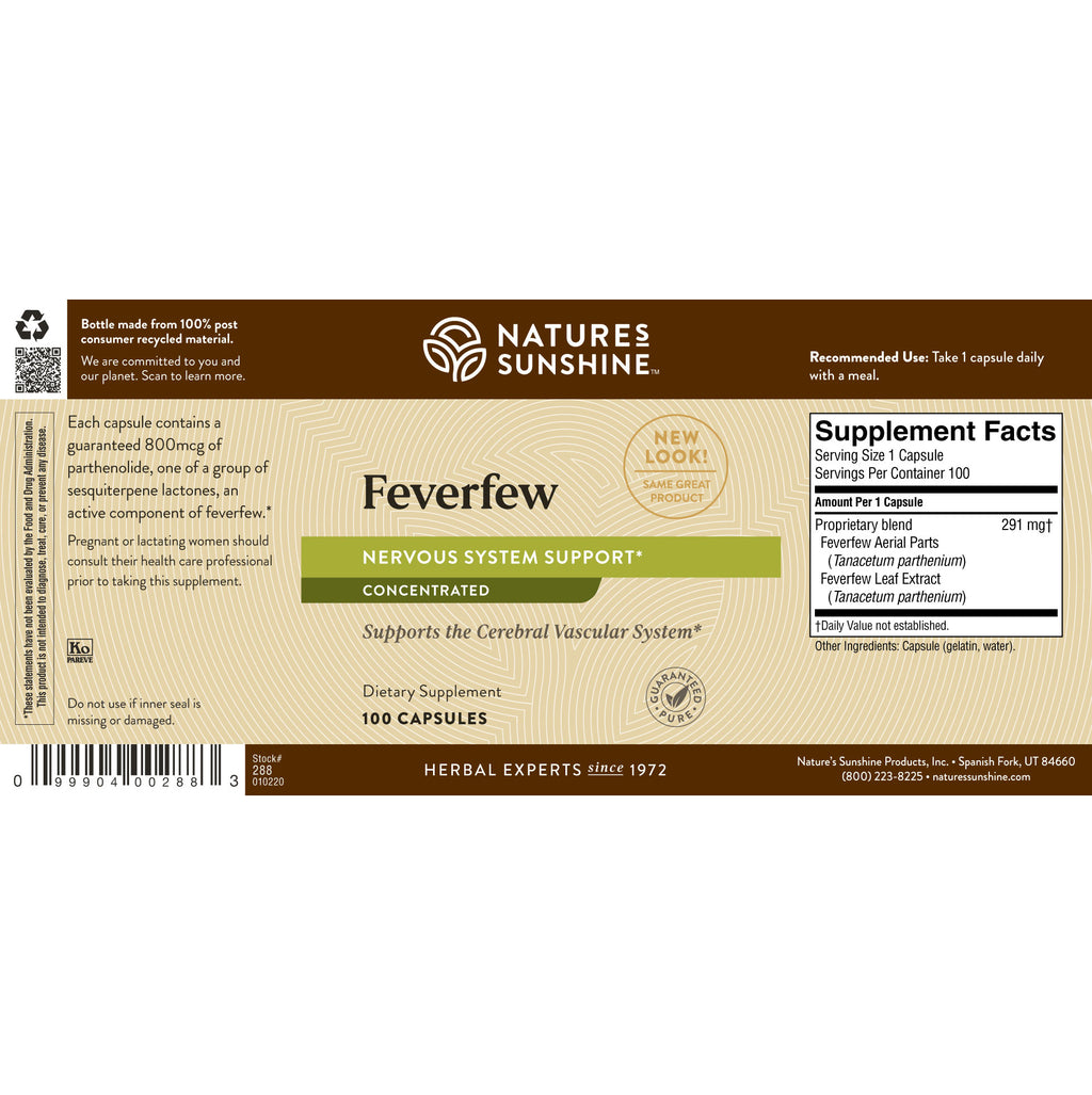 Feverfew may help balance the body’s synthesis of prostaglandins that cause physical discomfort. - Supports the central nervous system.