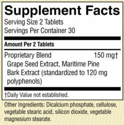 Extracts of grape seed and pine bark create a powerful antioxidant product that supports the nervous and cardiovascular systems. Offers 60 mg proanthocyanidins per tablet.- Scavenges cell-damaging free radicals.