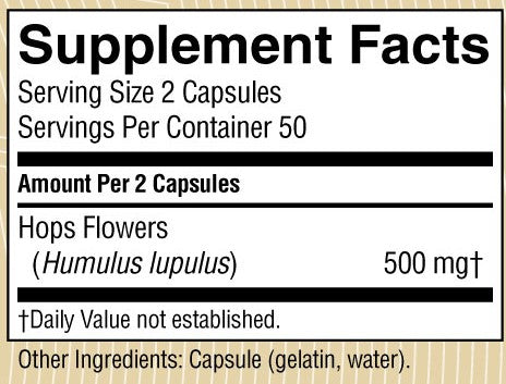 Hops has a calming effect on the nervous system and is a common ingredient in products used to promote restful sleep. It has nervine properties. Hops contains xanthohumol, which possesses antioxidant properties.Ingredients