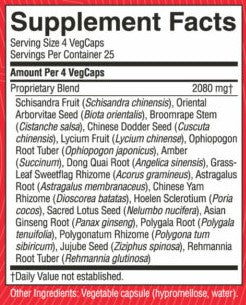 Schisandra fruit, biota seed, cistanche stem, cuscuta seed, lycium fruit, ophiopogon root tuber, succinum amber, tang-kuei root, acorus rhizome, astragalus root, dioscorea rhizome, hoelen sclerotium, lotus seed, ginseng root, polygala root, polygonatum rhizome, jujuba seed and rehmannia root tuber.