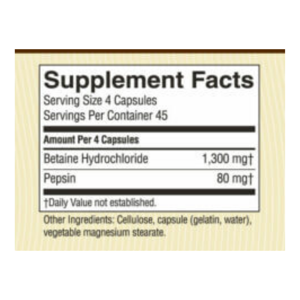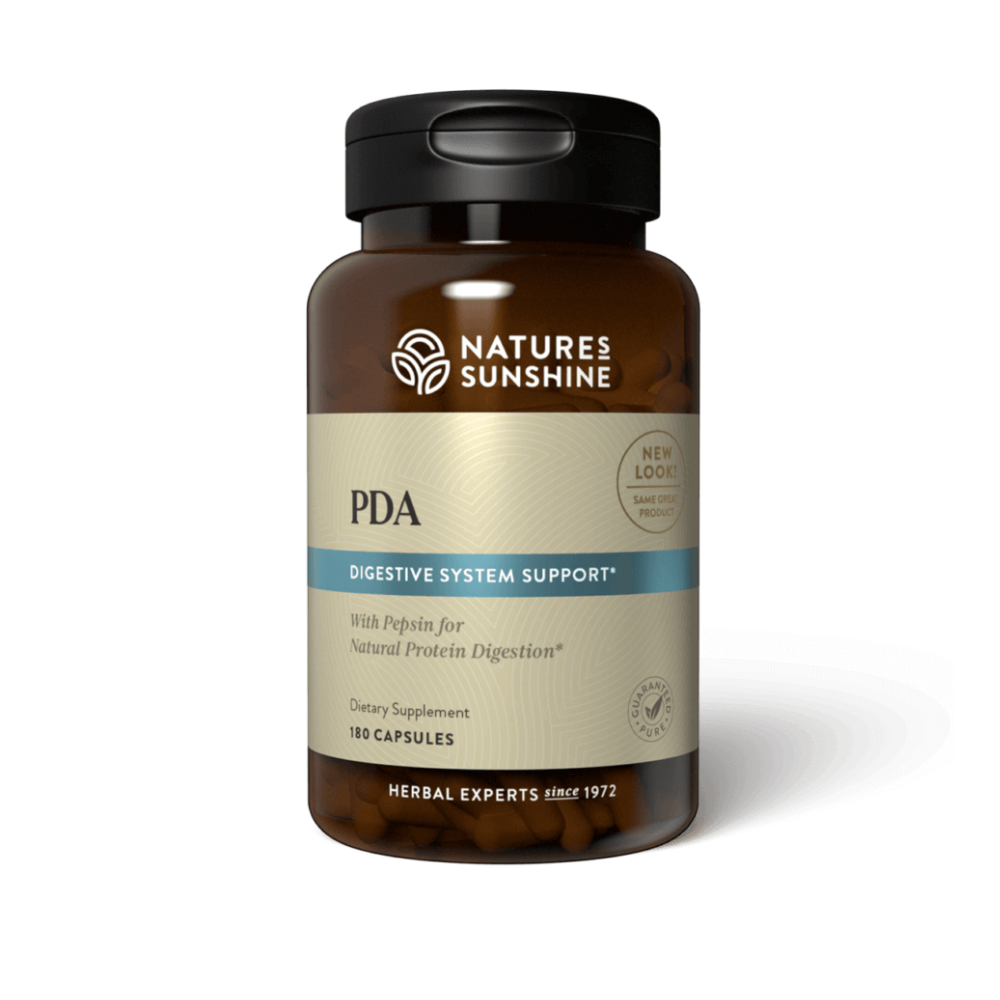 PDA supplements the body’s digestive secretions with hydrochloric acid (HCl) and provides pepsin, a natural protein-digesting enzyme.