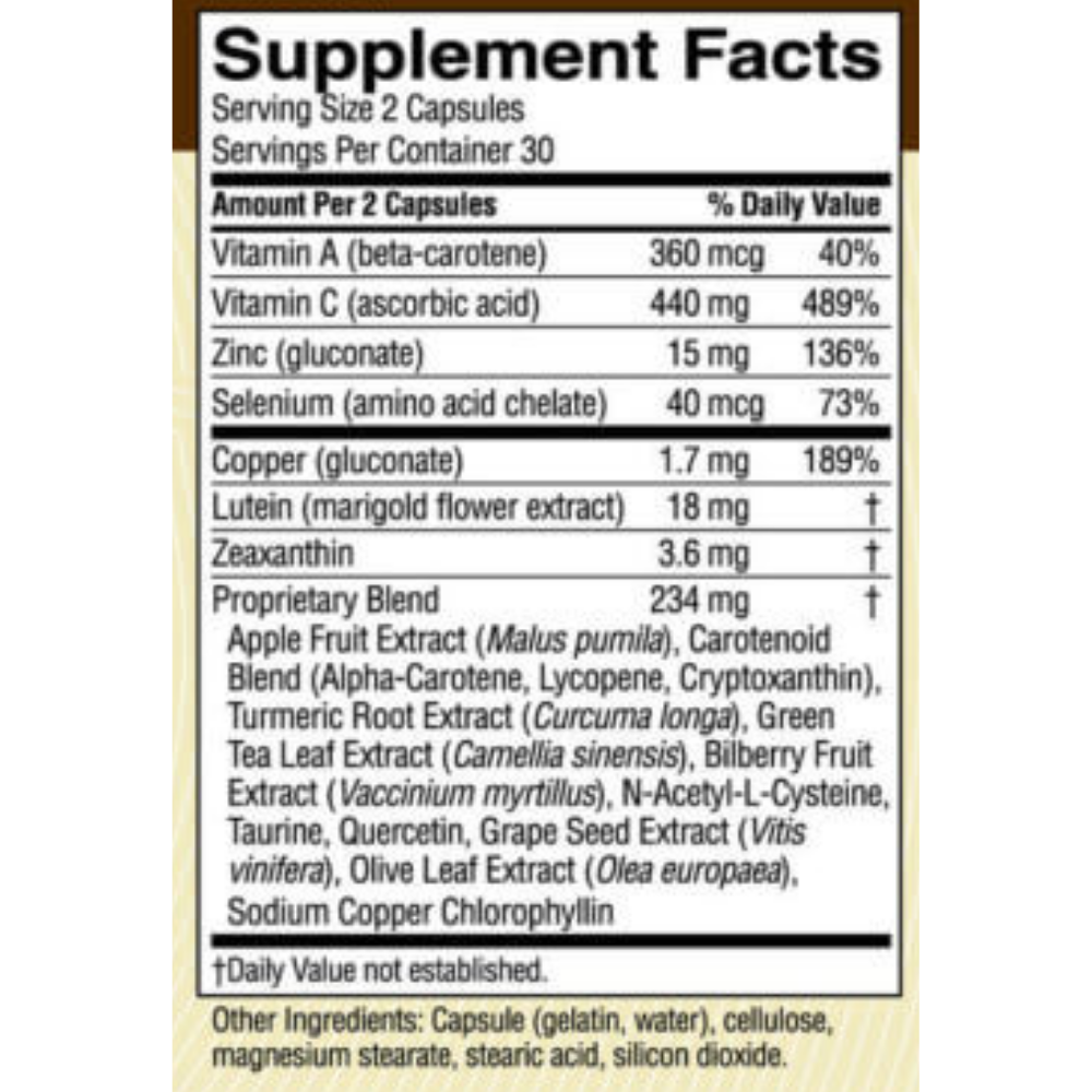 After middle age, our natural antioxidant production decreases, and the pigments in our eyes change. Lutein, zeaxanthin and mesozeaxanthin are three key ingredients in this formula that may reduce the risk of light-induced oxidative damage that could lead to age-related macular degeneration.