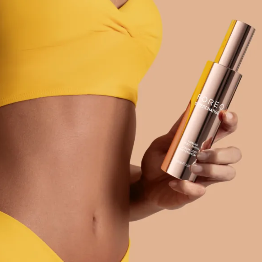- Apply your FOREO SUPERCHARGED™ Firming Body Serum evenly across skin, as desired. If following with your BEAR™ 2 body device, leave a thin mask-like layer on the surface of the areas of skin you wish to treat.